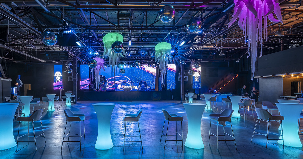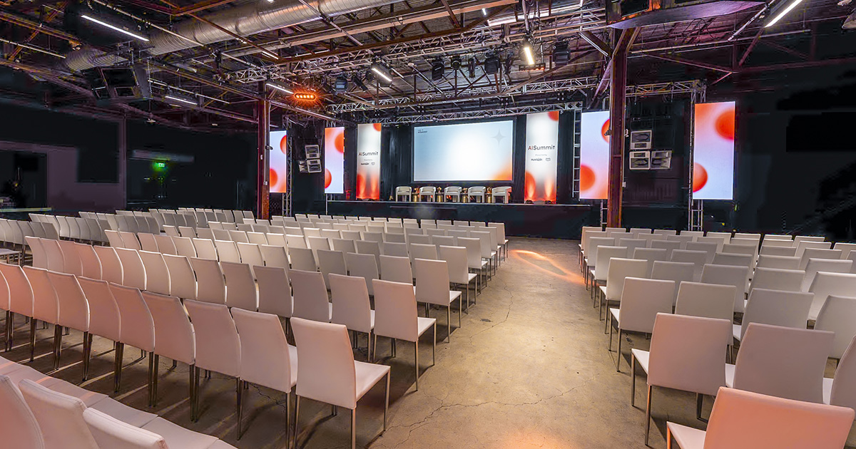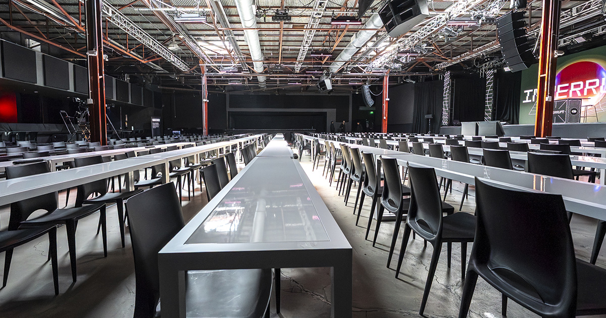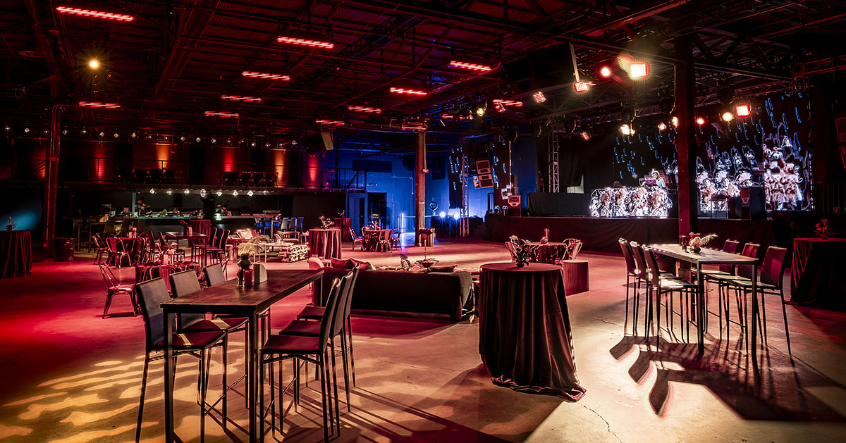 Upon entry, guests are greeted by industrial-chic architecture, bathed in natural light from overhead skylights. A striking 30-foot LED video wall and 35-foot built-in stage create a dynamic backdrop for tech summits, gala dinners, concerts, and large-scale productions.